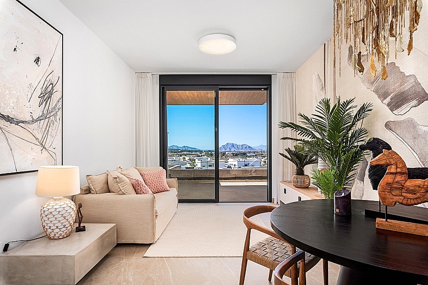 Auf Ihrem Balkon ist ausreichend Platz für eine Loungegarnitur und einen geräumigen Esstisch, um das spanische Leben zu genießen.