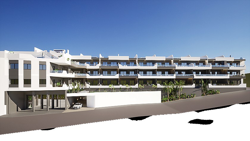 Wir freuen uns, Ihnen diese exklusive Anlage mit Luxusapartments in Benijofar präsentieren zu können. Die Apartments verfügen über zwei Schlafzimmer und zwei Badezimmer, davon eins en suite. Die luxuriöse Küche ist mit allen Geräten inklusive Geschirrspüler ausgestattet.