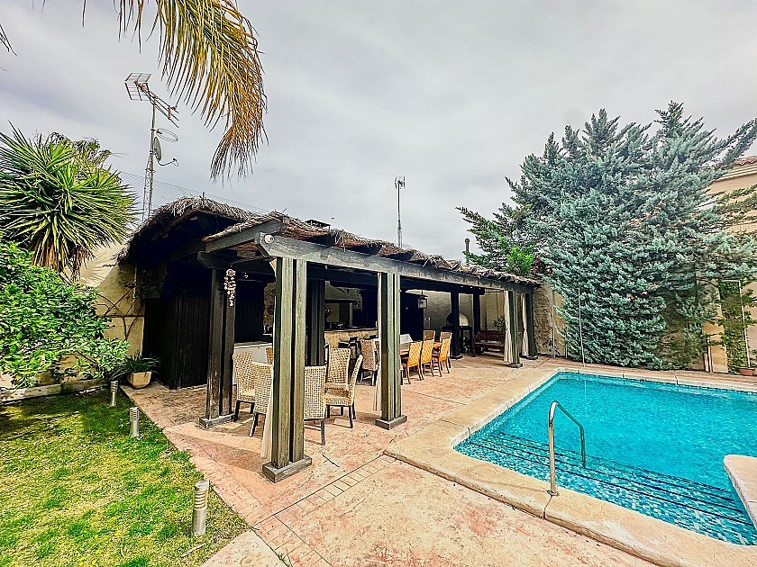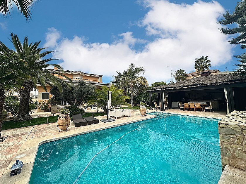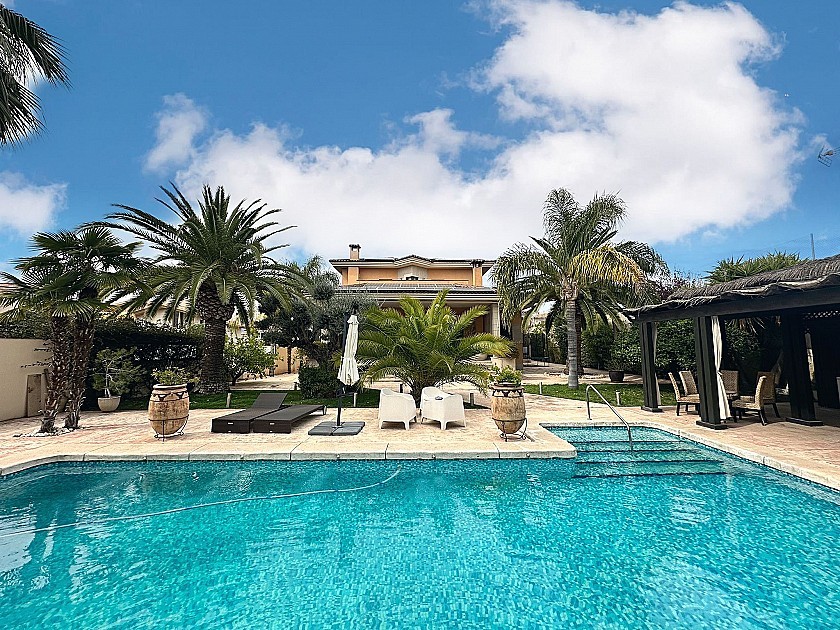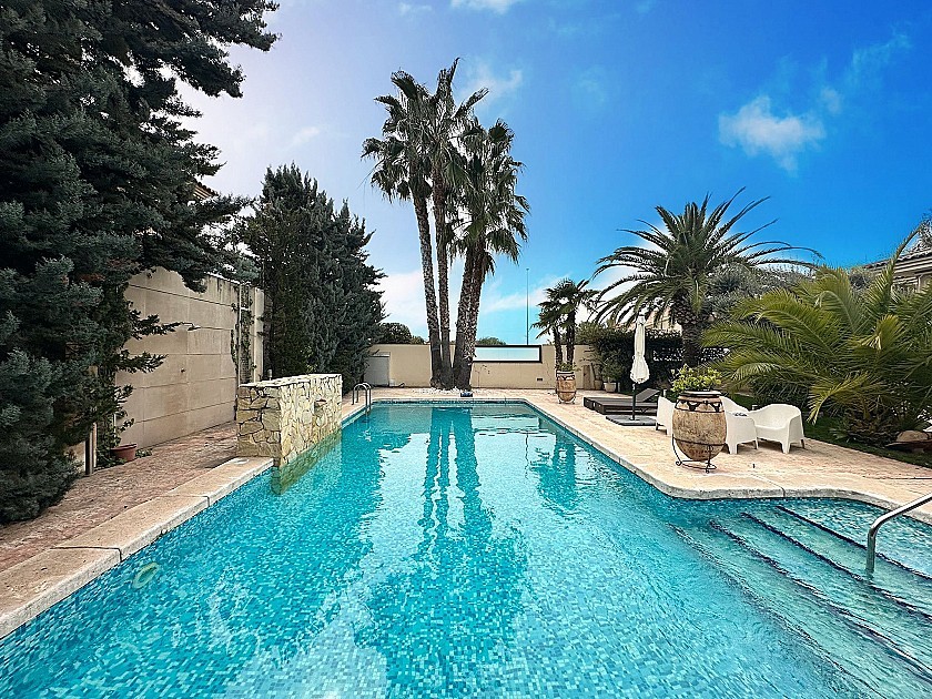 Das Herrenhaus verfügt über einen spektakulären 10 x 5 m großen Pool im privaten Garten, umgeben von üppiger Vegetation und so gestaltet, dass Sie das mediterrane Klima genießen können. Die Terrasse im tropischen Stil mit Bar bietet eine elegante und entspannte Atmosphäre, um Cocktails im Freien zu genießen.