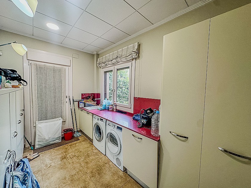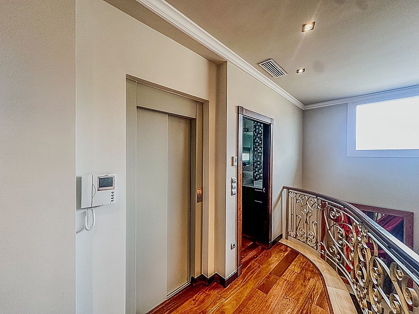 Im Inneren verfügt das Anwesen über einen Aufzug, der den Zugang zu allen Etagen erleichtert und Komfort und Zugänglichkeit für alle Bewohner garantiert. Der riesige Keller beherbergt eine zweite Küche und einen Weinkeller und bietet Raum für Kreativität, entweder als zusätzlicher Unterhaltungsbereich oder als Spielzimmer.