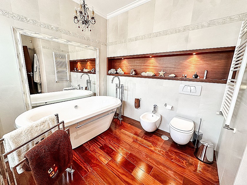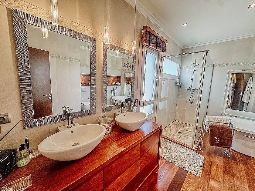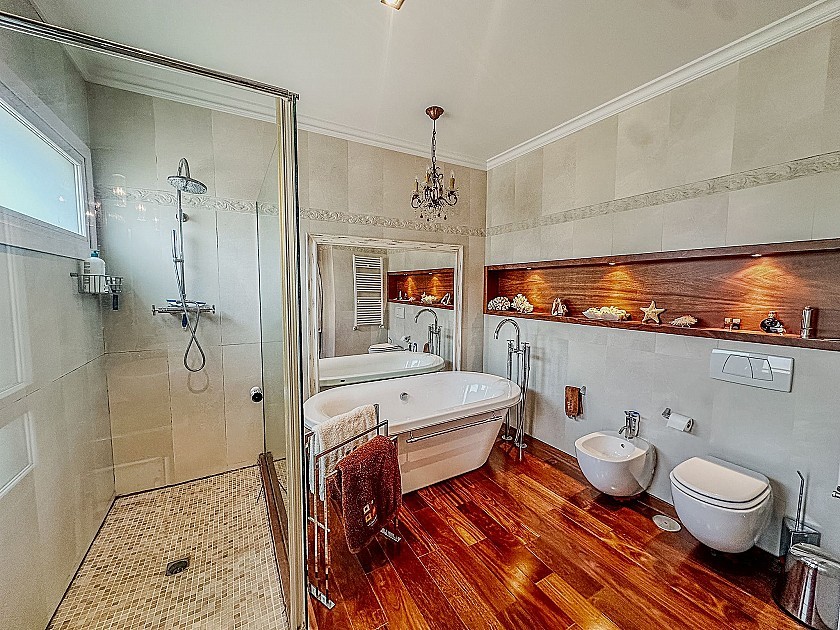 Jedes der fünf Schlafzimmer verfügt über ein eigenes Badezimmer, das Privatsphäre und Komfort für alle Bewohner gewährleistet. Das Herrenhaus ist außerdem in allen Bereichen mit Klimaanlage und Zentralheizung ausgestattet, sodass das ganze Jahr über ein optimales Raumklima gewährleistet ist.