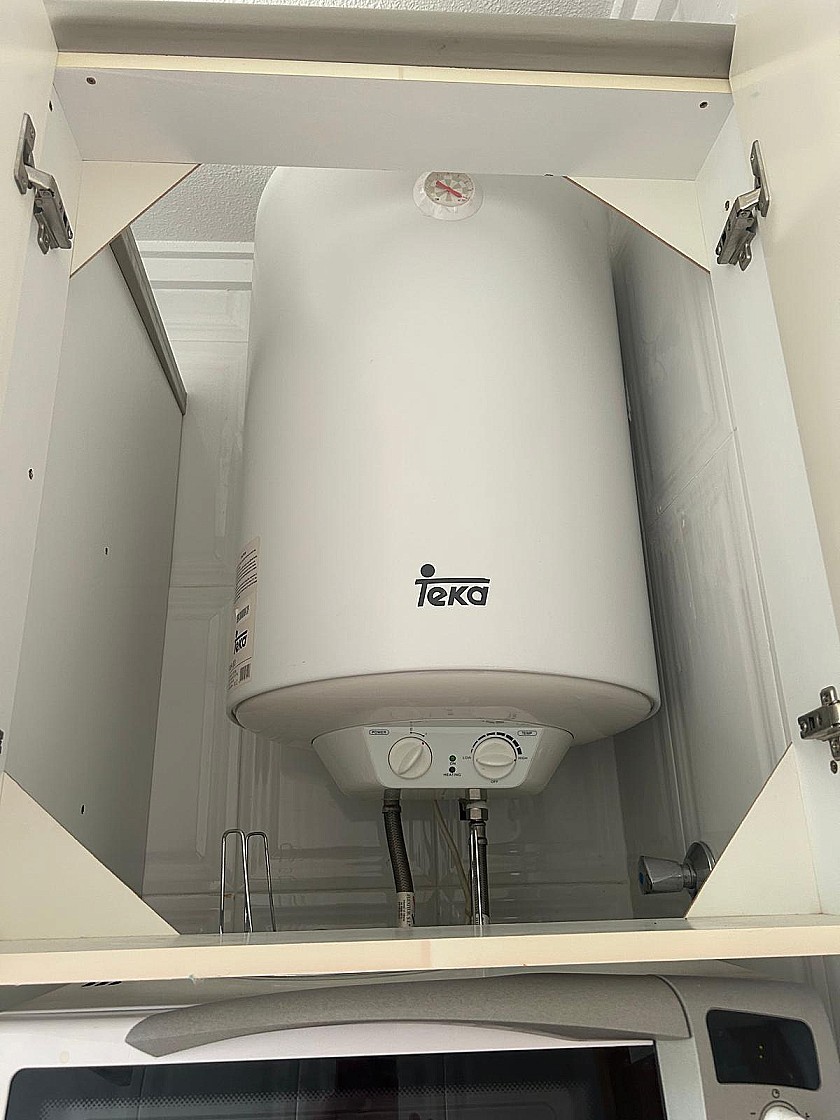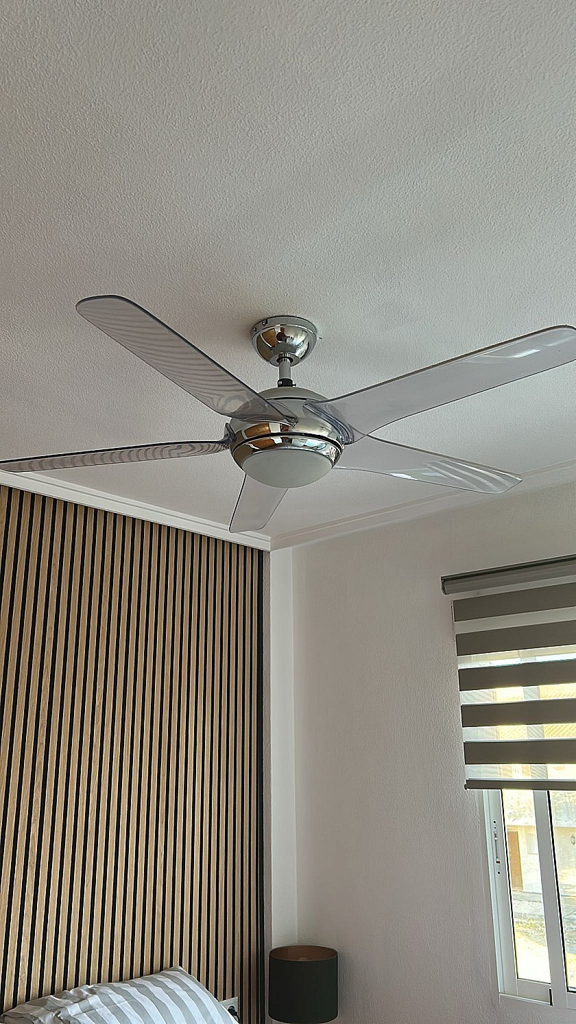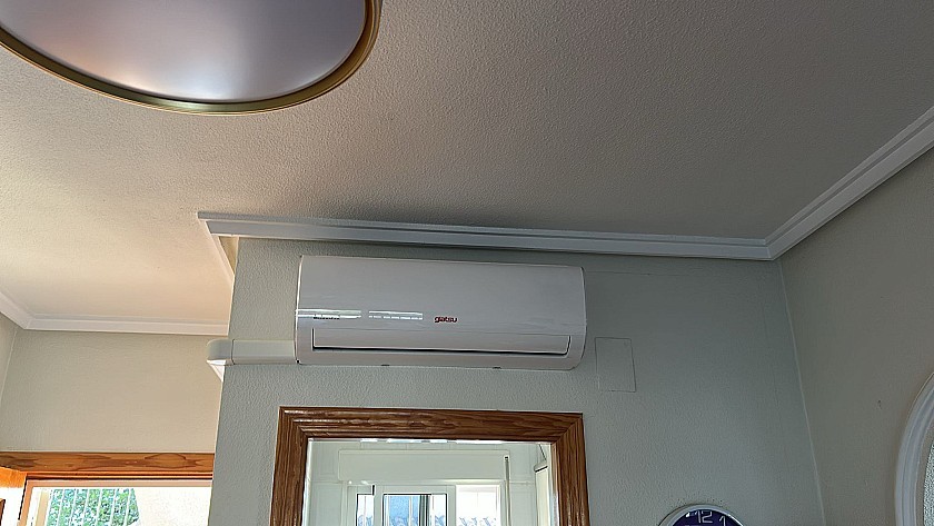 Neuer Pelletofen und Klimaanlage sowie Deckenventilatoren in allen Zimmern. Balkon vom Wohnzimmer, Südlage, und ausreichend Parkplätze vor den Wohnungen.