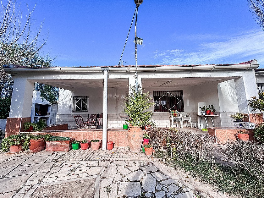 For sale: a detached villa built in 2002, located in a peaceful area between Sax and Elda. The property offers privacy, excellent access, and a privileged natural setting. It sits on a total plot of 3,455 m², of which 855 m² correspond to the main area where the house and facilities are located. The remaining 2,600 m² are situated directly in front of the house (not attached but very close) and include approximately 30 productive olive trees.