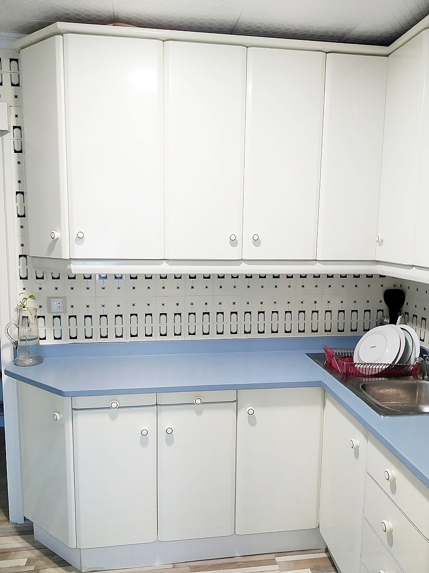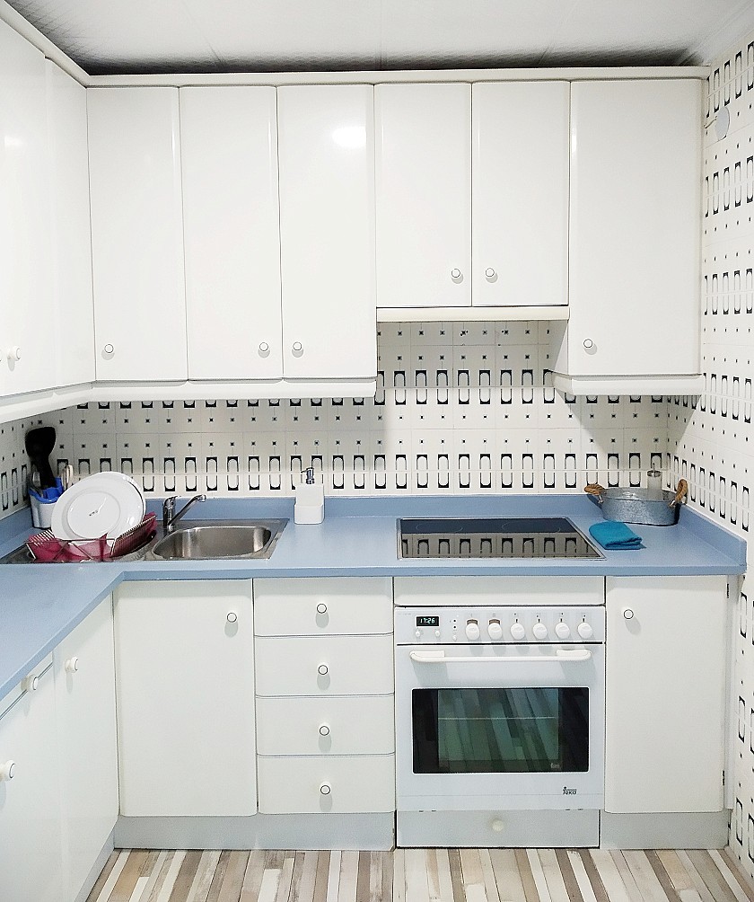 Cocina: totalmente equipada, con doble fregadero, vitrocerámica, horno con ventilador de aire, frigorífico No Frost, lavadora, microondas, tostadora, cafetera Nespresso, termo eléctrico y menaje de cocina completo. Dispone además de barra tipo office con dos taburetes acolchados.