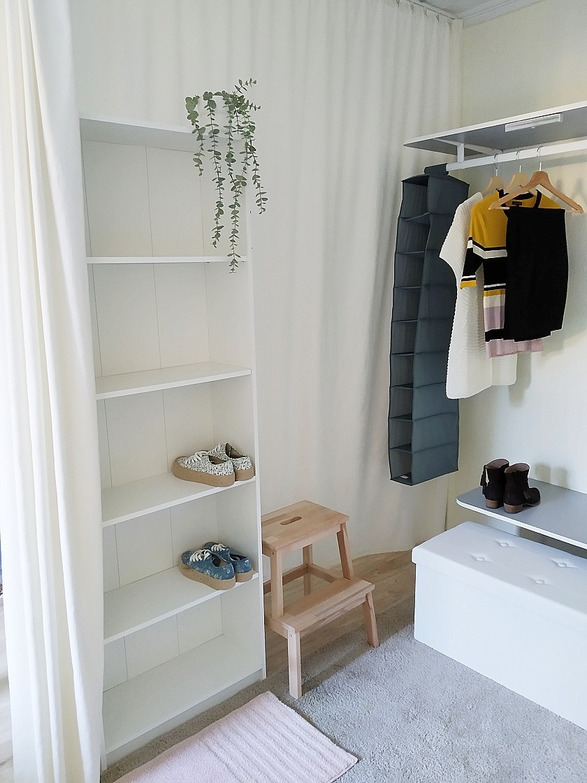 Salón-comedor: amplio espacio de aproximadamente 30 m², acogedor y luminoso, con balcón. Amueblado con mesa de comedor y cuatro sillas, sofá de tres plazas, diván, fuente de agua decorativa y estantería con mini biblioteca.
