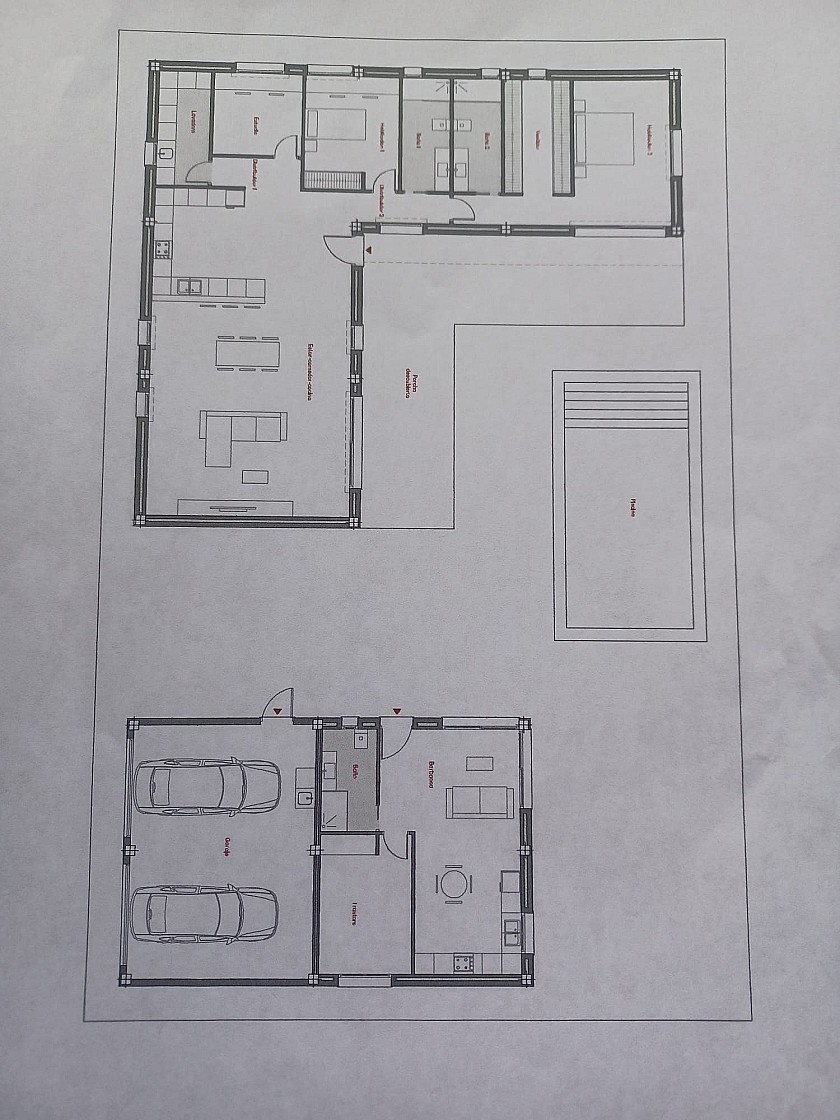 Los planos del arquitecto están disponibles para ver el tipo de casa que se propone, aunque esto aún se puede modificar. Con una parcela de 26.500 m², se puede construir hasta un 2%, lo que equivale a 530 m² (y eso es solo la superficie construida). Si decide optar por una casa de dos plantas, puede duplicar esa superficie, lo que ofrece amplio margen para añadir una cocina/barbacoa exterior y un aseo junto a la piscina, o incluso otra edificación.