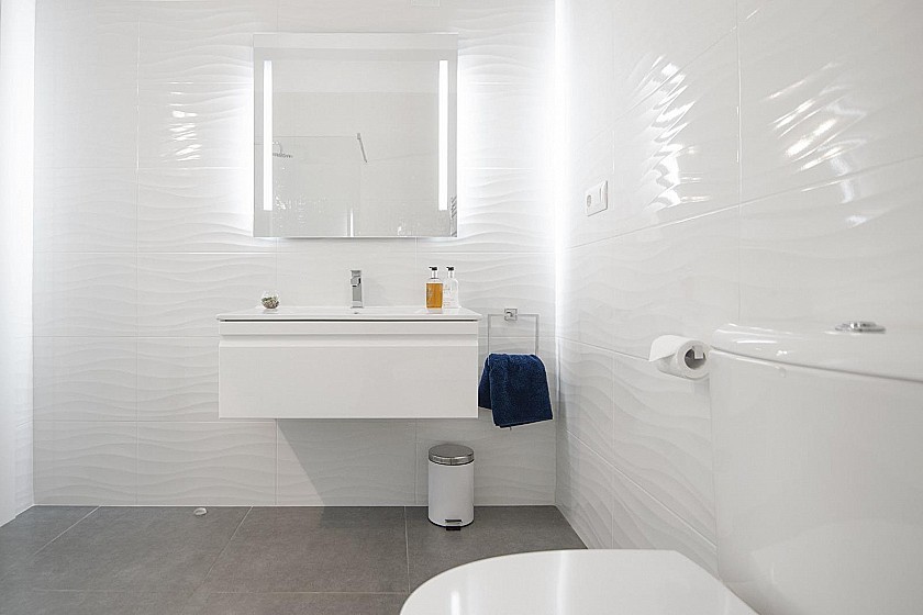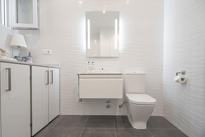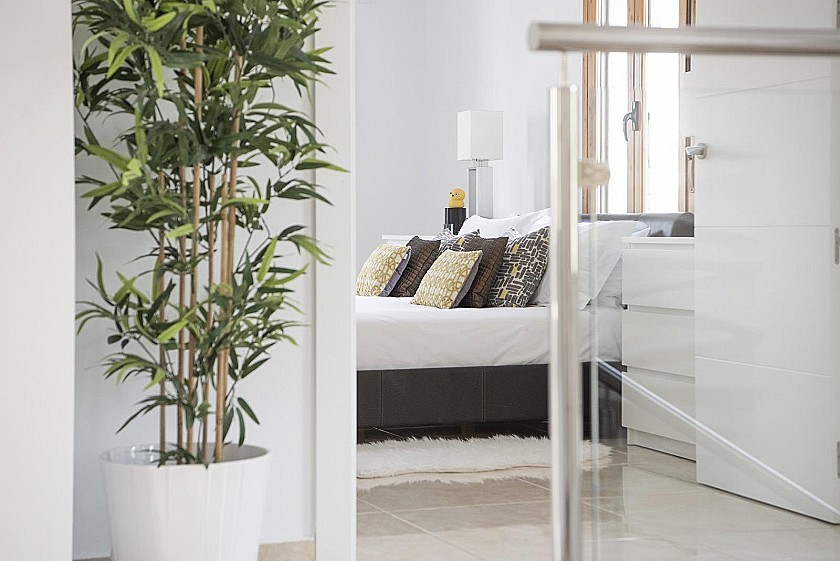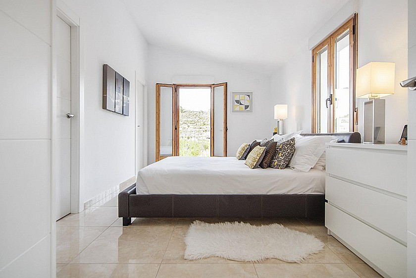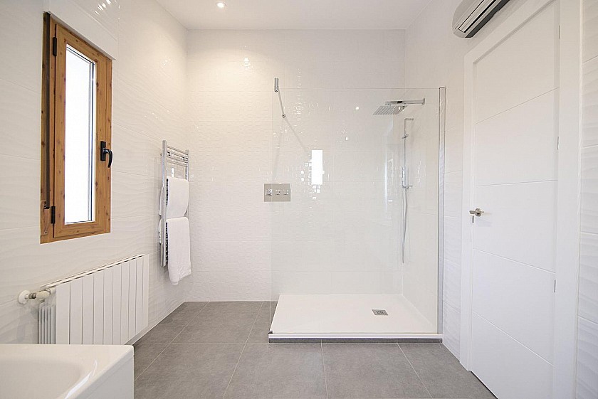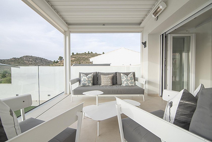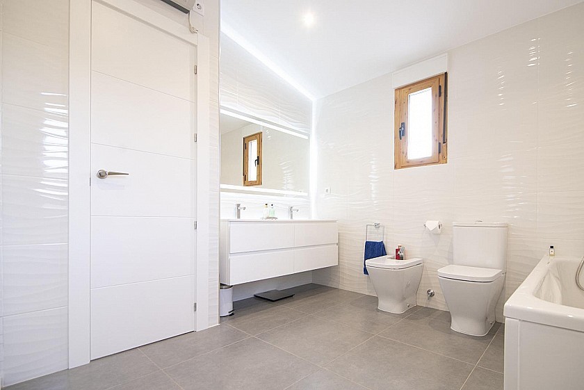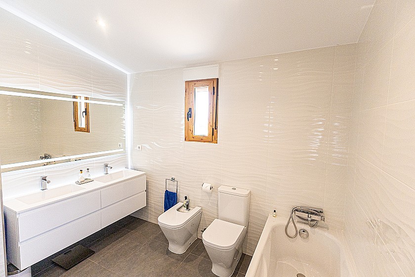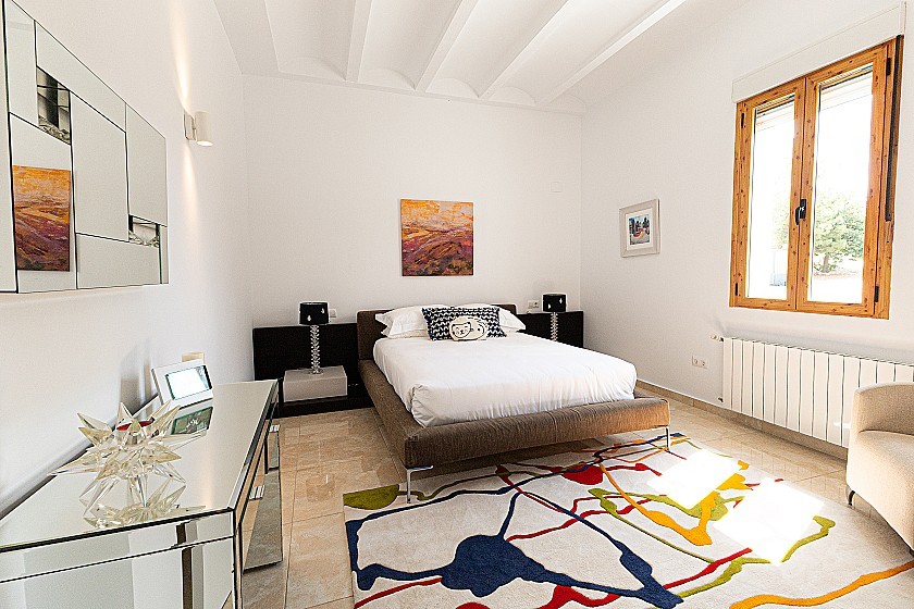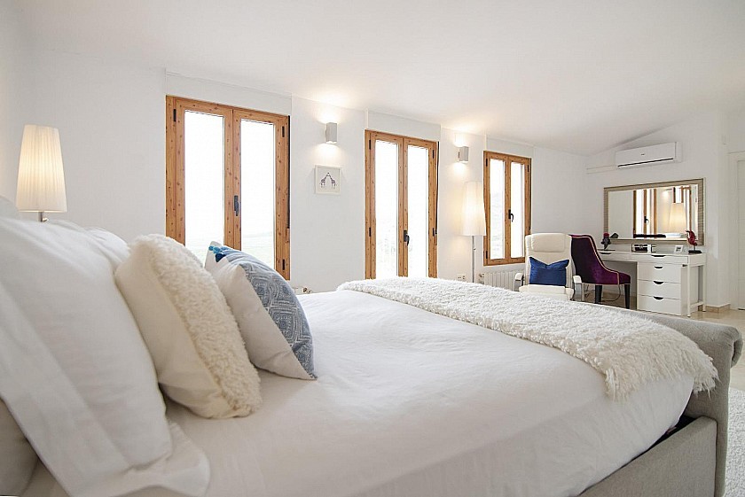 Una impresionante escalera ancha de azulejos, completa con barandillas de cromo y vidrio, conduce al primer piso donde hay un magnífico dormitorio principal con vestidor y baño que incluye dos lavabos, bidet, inodoro, bañera y un gran vestidor con paredes de vidrio. ducha. En esta planta se encuentran un total de 3 habitaciones dobles, todas con balcones estilo Julieta, vestidores y su propio baño. Todas las habitaciones tienen fantásticas vistas al campo circundante. Una puerta que sale del gran rellano con paneles de vidrio conduce a una terraza de ancho completo con vistas al parque natural. Se pueden desplegar toldos eléctricos dobles siempre que se requiera sombra adicional.