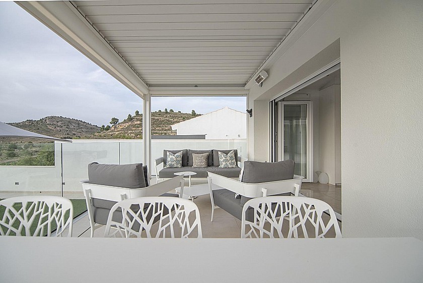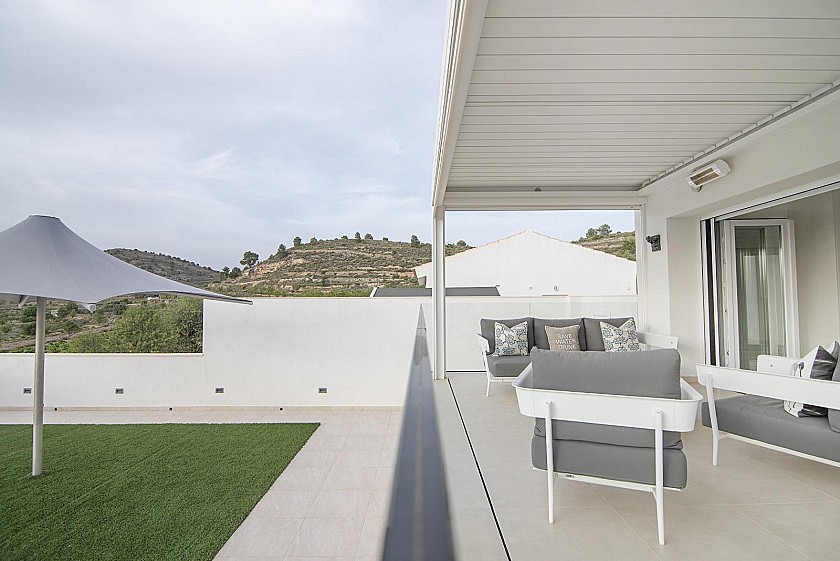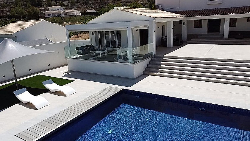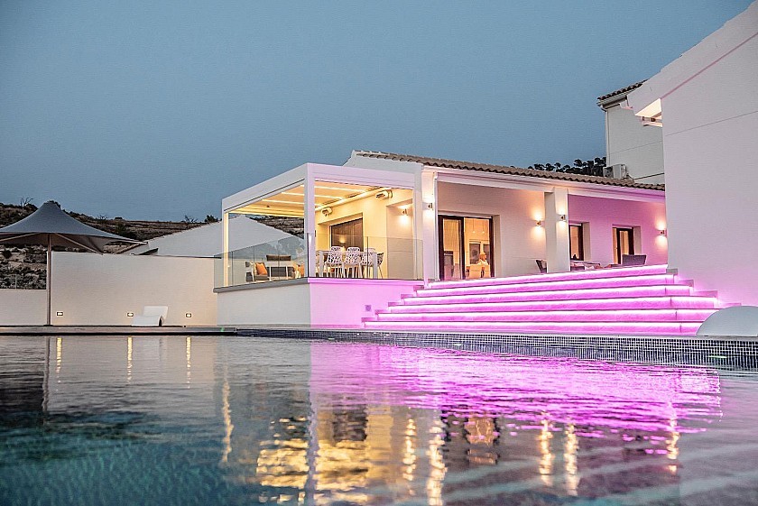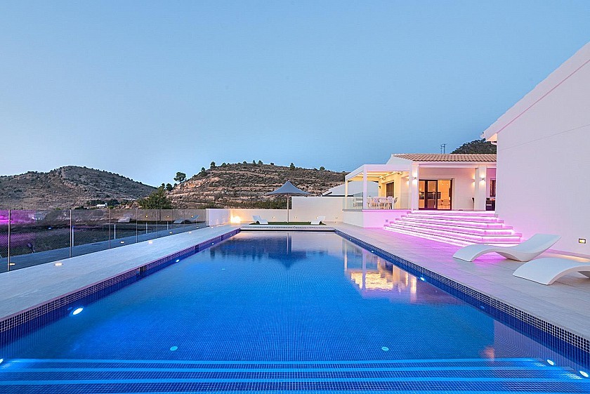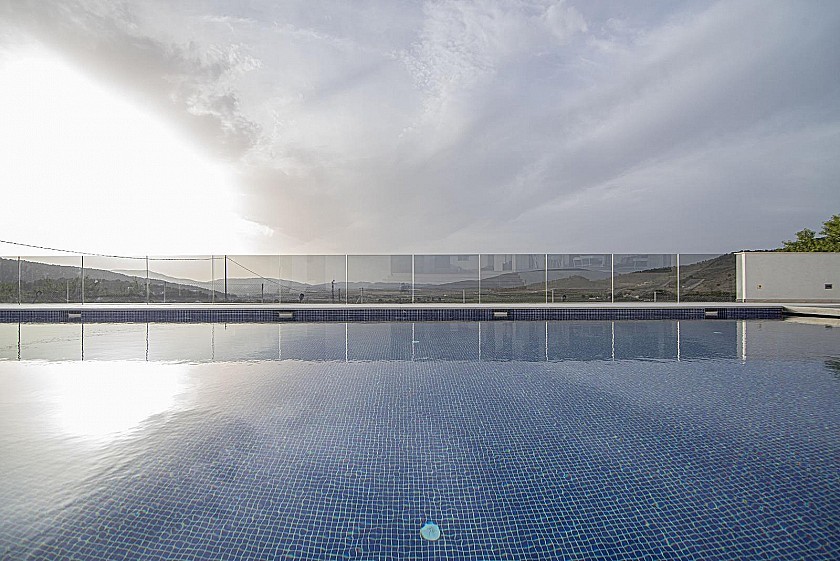 Con múltiples áreas para sentarse para adaptarse a todo tipo de clima, esta notable propiedad sigue dando. Los escalones, completos con iluminación integral con control remoto, lo llevan al área de la piscina. Esto incluye la gran piscina de 16 x 6 metros con cubierta eléctrica totalmente integrada y terrazas para tomar el sol alrededor, incluida una con césped artificial de alta calidad y una sombrilla fija resistente al viento especialmente diseñada para ello. Desde el interior de la piscina aún se pueden disfrutar de las magníficas vistas del valle de Encebras a través de los paneles de cristal de toda la anchura de la piscina, todo iluminado por la noche mediante focos.
