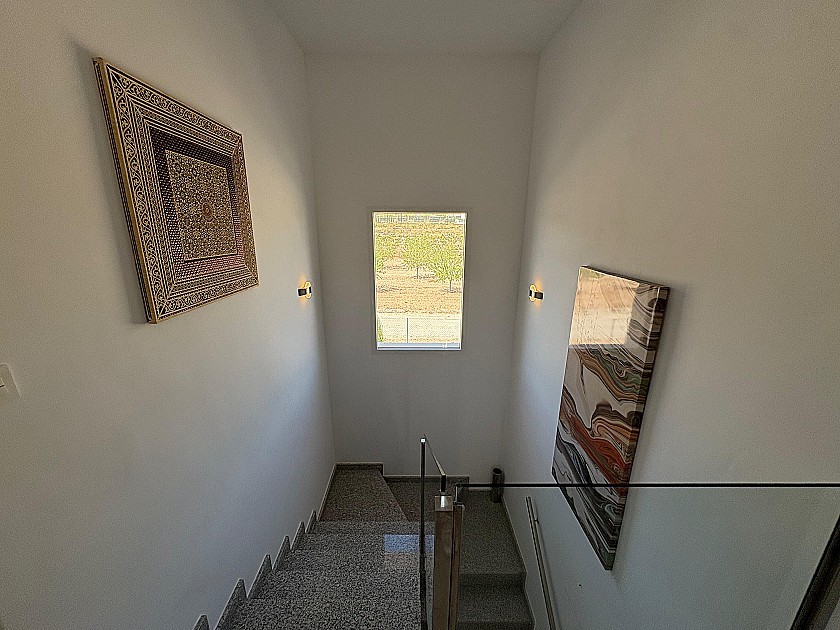 Gran ventana de cristal fija en la escalera para mayor iluminación.