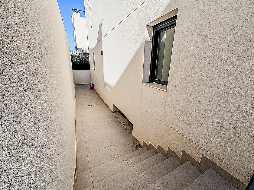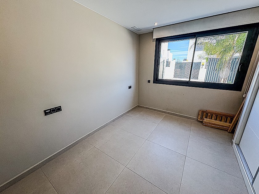 Begane grond: Een comfortabele slaapkamer, een luxe badkamer en een apart gastentoilet. Een lichte, open woon- en eetkamer met uitzicht op de tuin en het zwembad. Tevens een aparte wasruimte met extra opbergruimte.