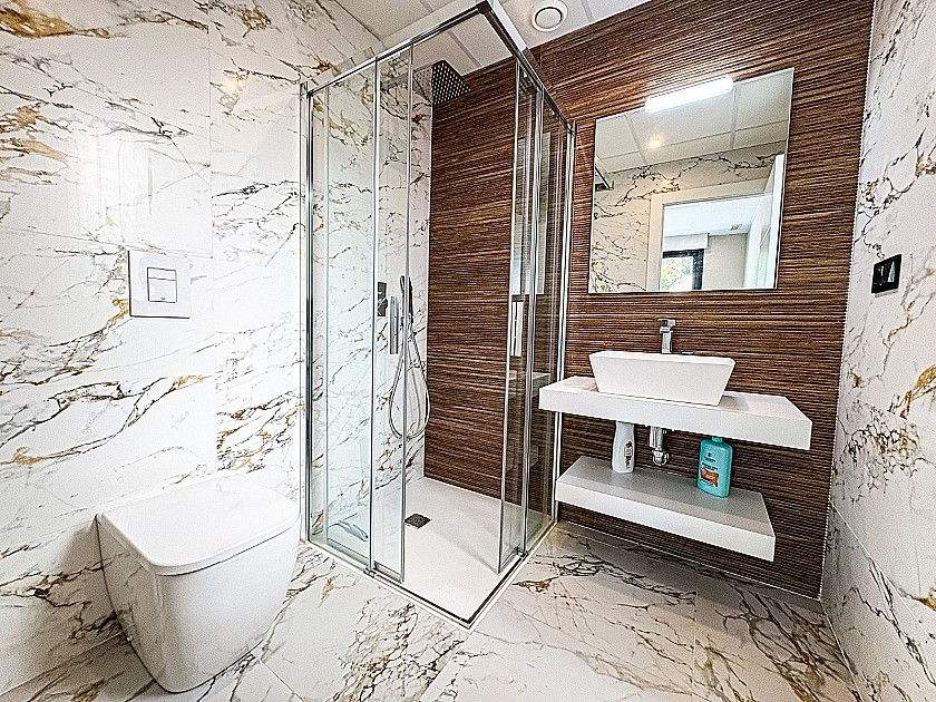 Eerste verdieping: Twee grote slaapkamers, elk met een eigen luxe badkamer. Vanaf deze verdieping heeft u toegang tot een ruim terras waar u in alle rust van de zon en het uitzicht kunt genieten.