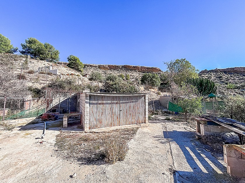 Te koop: een bijzonder landhuis in Crevillente, bestaande uit een gedeeltelijke grotwoning en een traditioneel gebouwd deel, gelegen op een volledig omheind perceel van 3.500 m². De woning uit 1980 heeft een totale woonoppervlakte van 191 m² en combineert in de rots uitgegraven ruimtes met conventionele kamers, wat een unieke sfeer en een uitstekende natuurlijke isolatie biedt.
