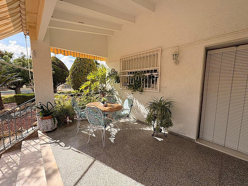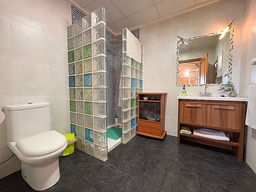 De hoofdwoning beschikt over 4 ruime slaapkamers en 2 moderne badkamers. De lichte woonkamer komt uit op een groot terras met uitzicht op het 8x4 meter zwembad, omringd door zonneterrassen en mediterrane beplanting.
