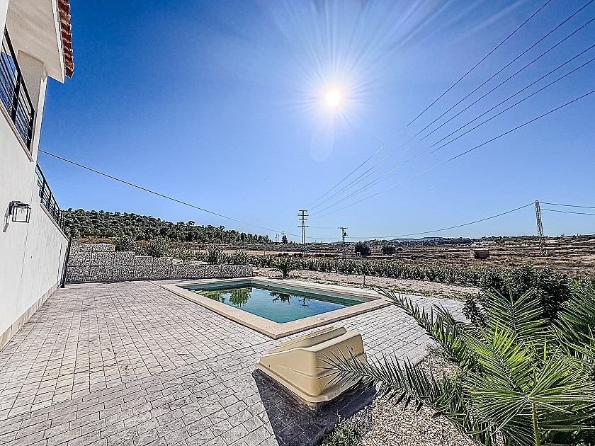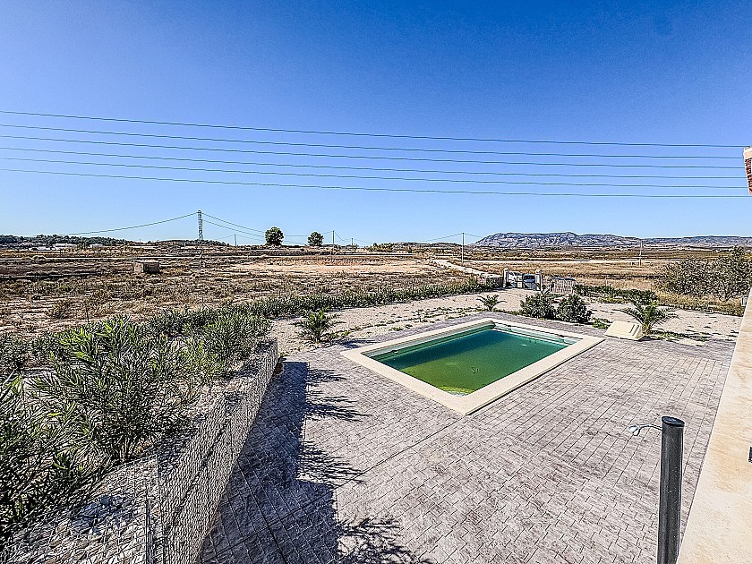 Buiten ligt een prachtig zwembad van 8 × 4 meter, perfect om van de zon te genieten te midden van een schitterend uitzicht over de vallei en de wijngaarden. De woning is gemakkelijk bereikbaar via een geasfalteerde weg en ligt op slechts vijf minuten rijden van het centrum van Pinoso. Het nabijgelegen dorp El Rodriguillo is op loopafstand en heeft een gezellig restaurant/bar.