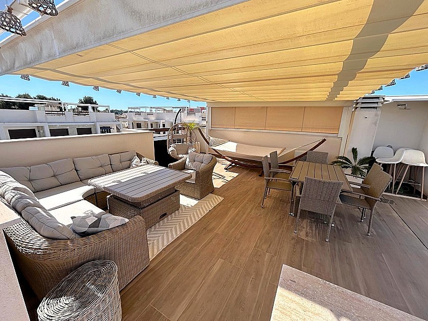 De woning is voorzien van airconditioning (warm en koud), voor optimaal comfort het hele jaar door. Ook buiten is er volop ruimte, met een privéterras en een solarium op het dak – perfect om te genieten van de mediterrane zon.